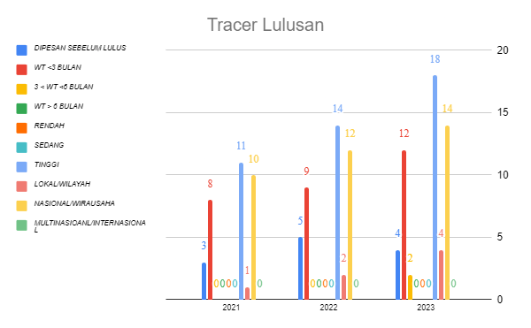 Tracer Studi : https://docs.google.com/spreadsheets/d/e/2PACX-1vSJHQ_nWHE7Z9kSSMi6WTE57g-bk8wyIVwznJkeFJZNvt4FaD-r8Jj_9gufHQwsZolEeNniEBYCyGht/pubchart?oid=960503433&format=interactive